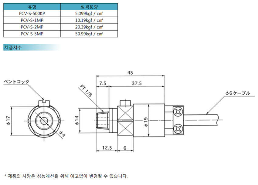 | 정격용량(R.C.) | 500kPa, 1MPa, 2MPa, 5MPa | ||