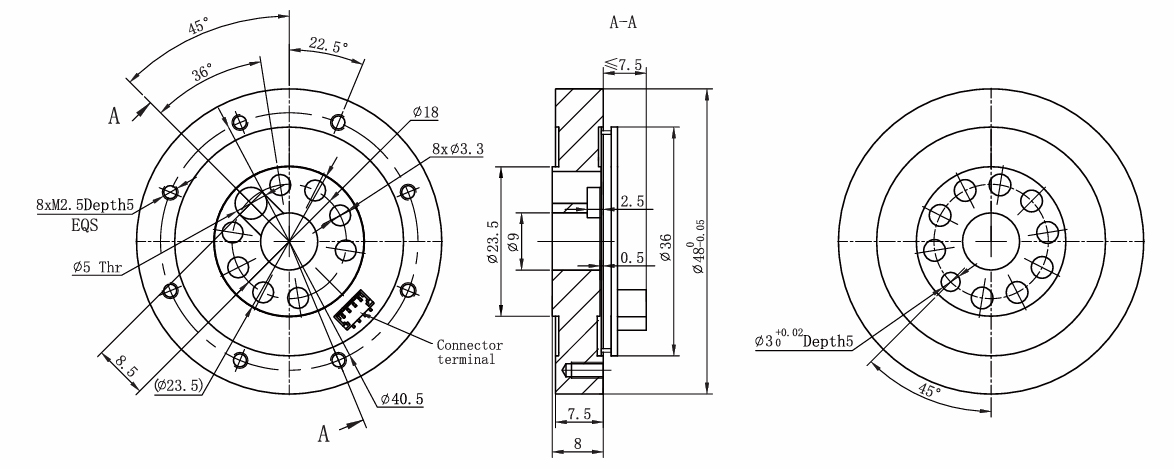 | 비선형 | ≤ 0.5% F.S. | 출력신호 | 0.5V - 2.5V - 4.5V (–7.5N.m - 0 - 7.5N.m) |