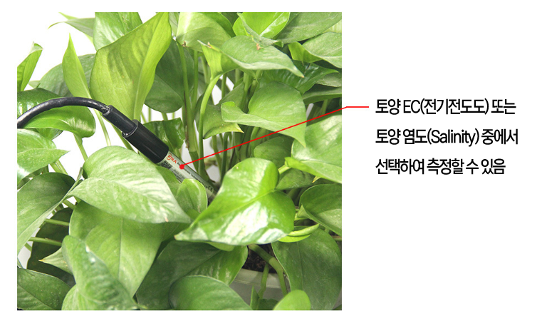 - 실시간 측정 : 센서를 토양에 꽂아두면 지속적으로 EC/염도를 자동 측정함.